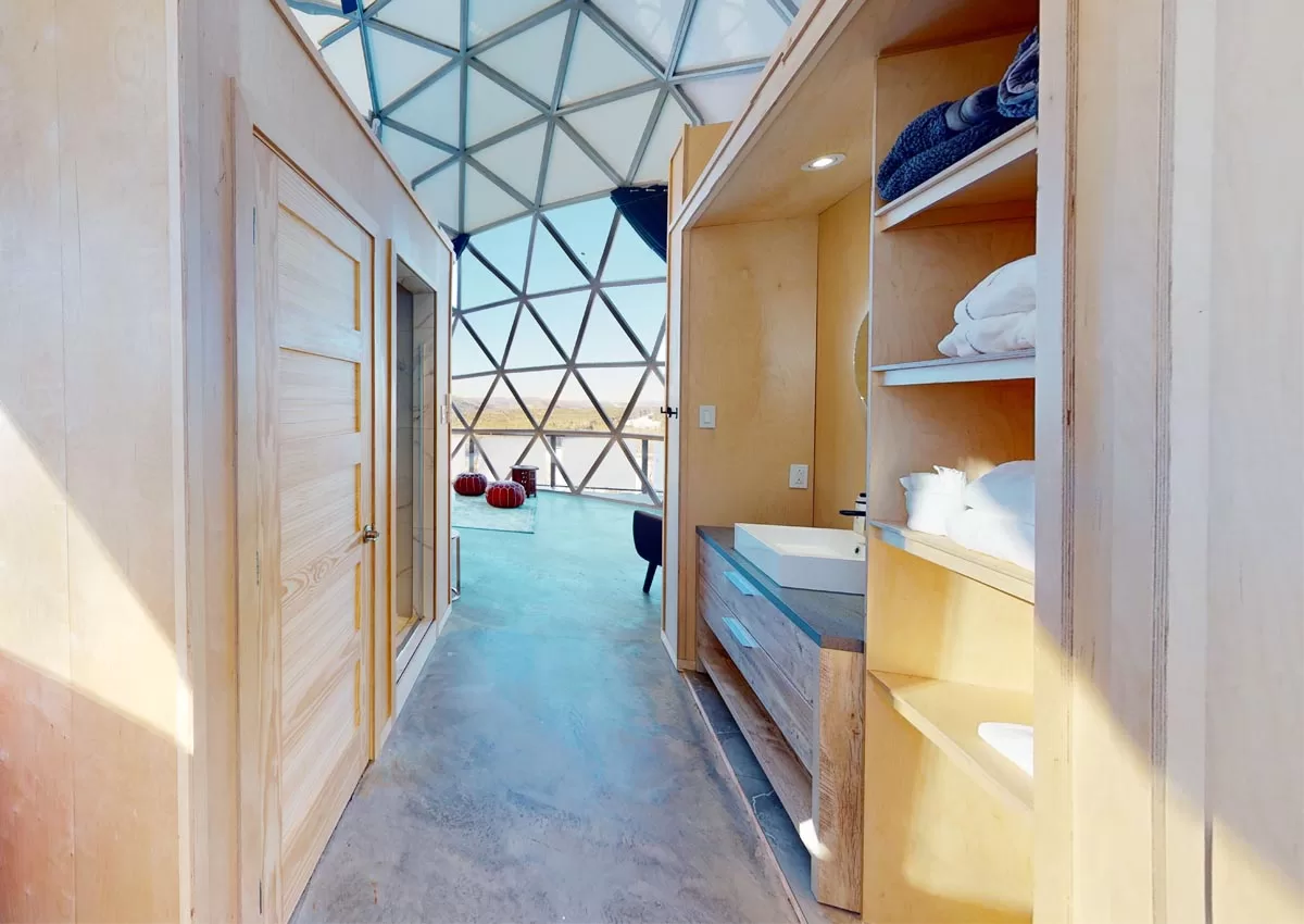 Designed for two people, the Super Glass Dome is spacious and equipped with everything you need for a comfortable stay. The king-size bed faces a large pane window providing a front row view of nature.
