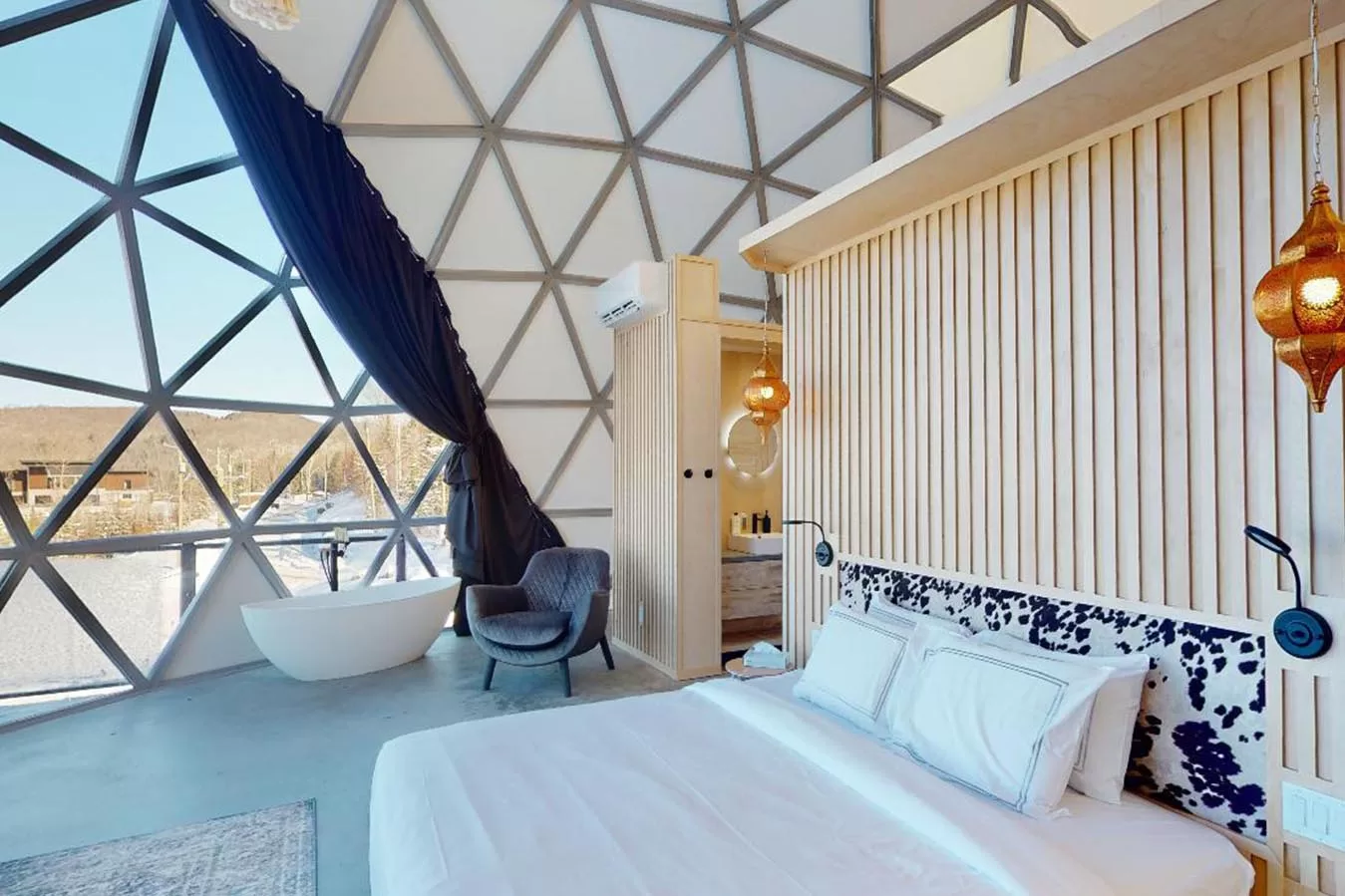 Sleep under the stars in the most Instagram worthy luxury glamping dome in Quebec. The Super Glass Dome, which offers a perfect balance of comfort and nature, is the newest lodging experience at Bel Air Resort.